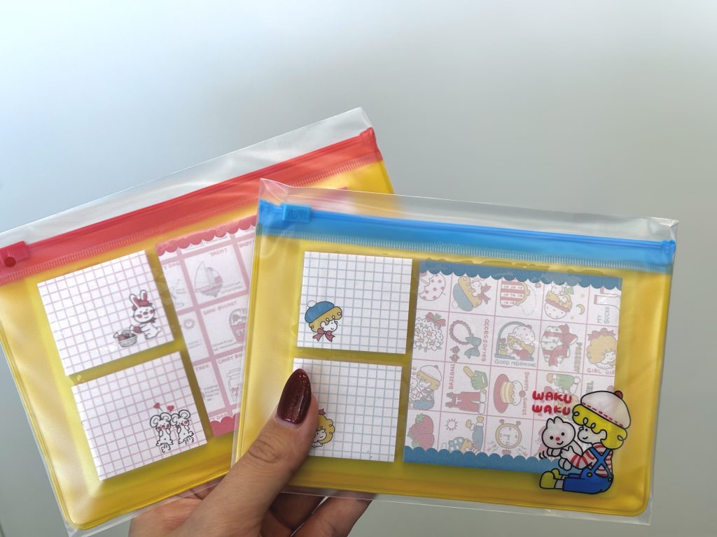 チャーミーレトロポーチ付ふせんセットをお配りしています