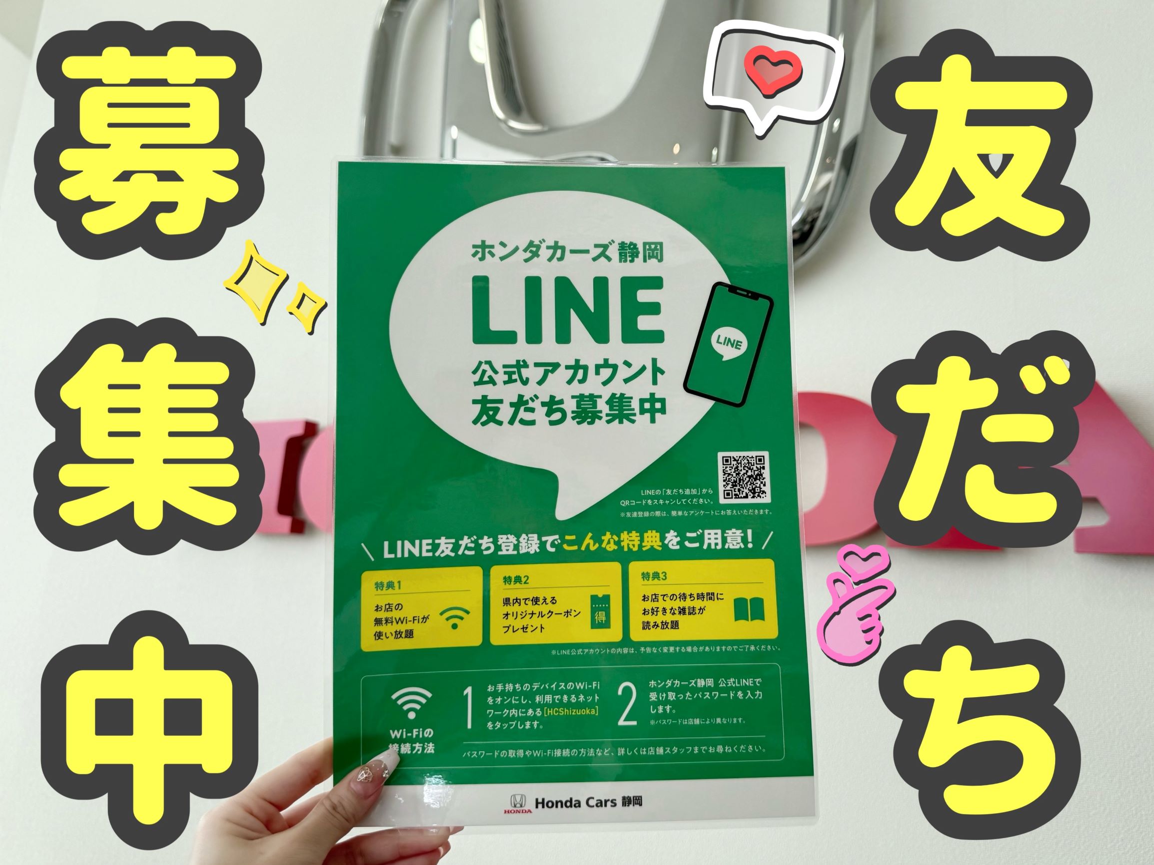 ホンダカーズ静岡公式LINEを友だち登録すると