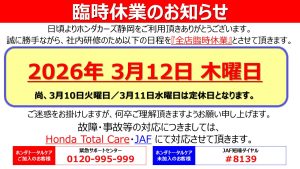 3月12日(木)は社内研修のため全店臨時休業となります。