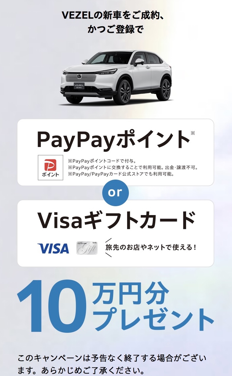 ご成約プレゼントキャンペーン|ヴェゼル|Honda公式サイト