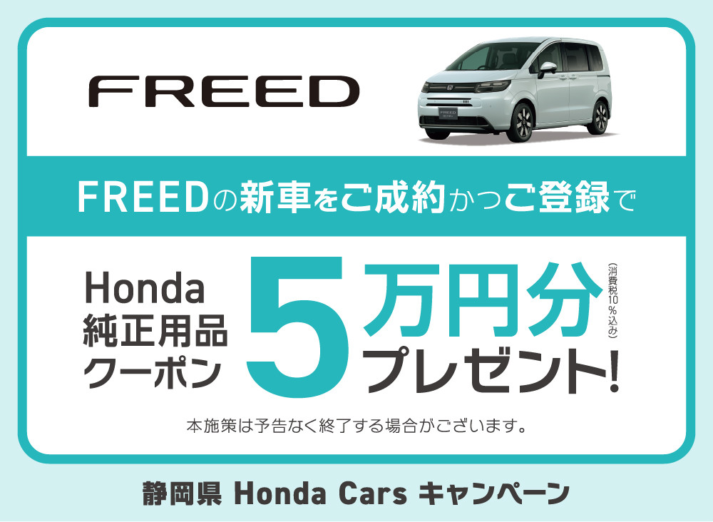 ●FREED(e:HEV含む)を新車でご成約かつご登録いただいた方が対象となります。